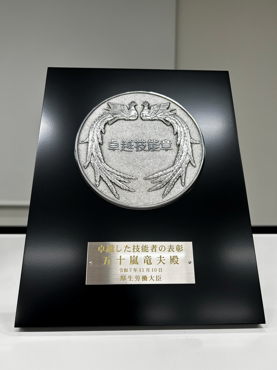 写真①令和7年度「卓越した技能者(現代の名工)」表彰盾